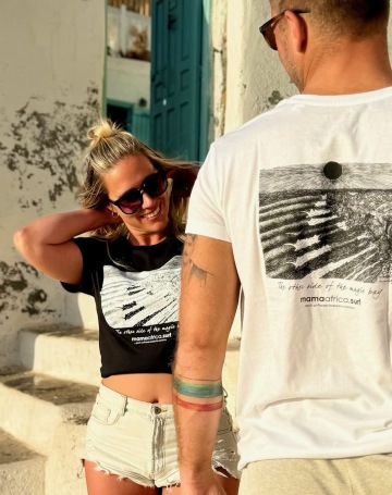 Trička mamaafrica.surf , jsou skvělou volbou pro oživení šatníku nebo udržení vzpomínek na Afriku. Jsou totiž Cool a hlavně vyrobené ze 100% BIO bavlny. Design je tématicky propojen s tím co máme všichni nejvíc rádi. A to jsou samozřejmě vlny.