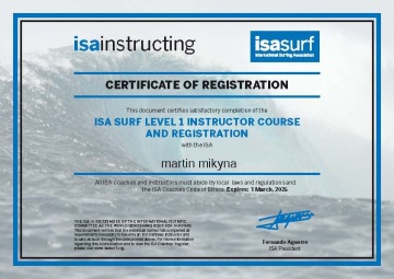 Martin Mikyna (ISA surfcoach, ILS Lifeguard) - výuka možná v AJ, NJ a ČJ